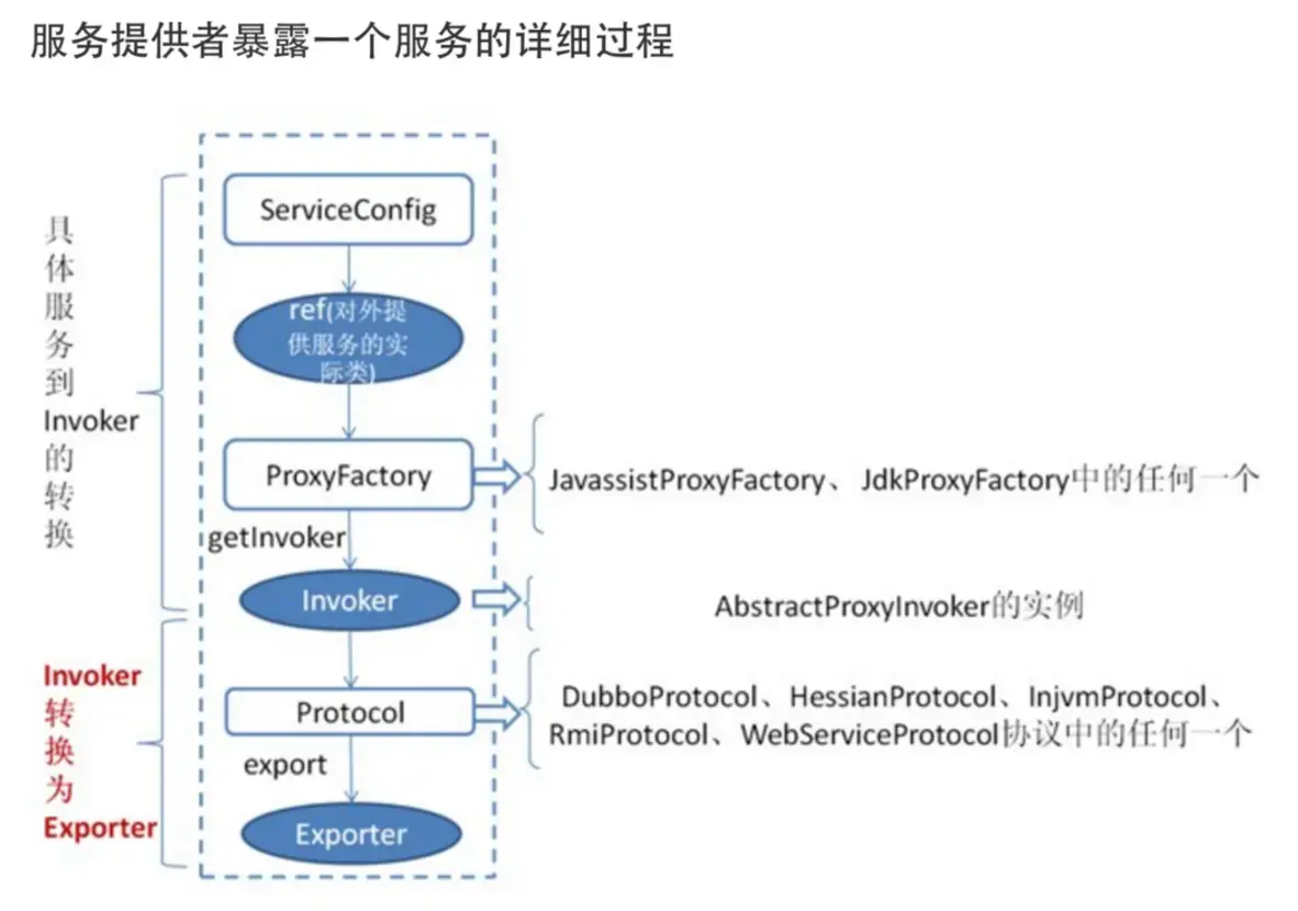 Dubbo 处理服务暴露的关键就在 Invoker 转换到 Exporter 的过程