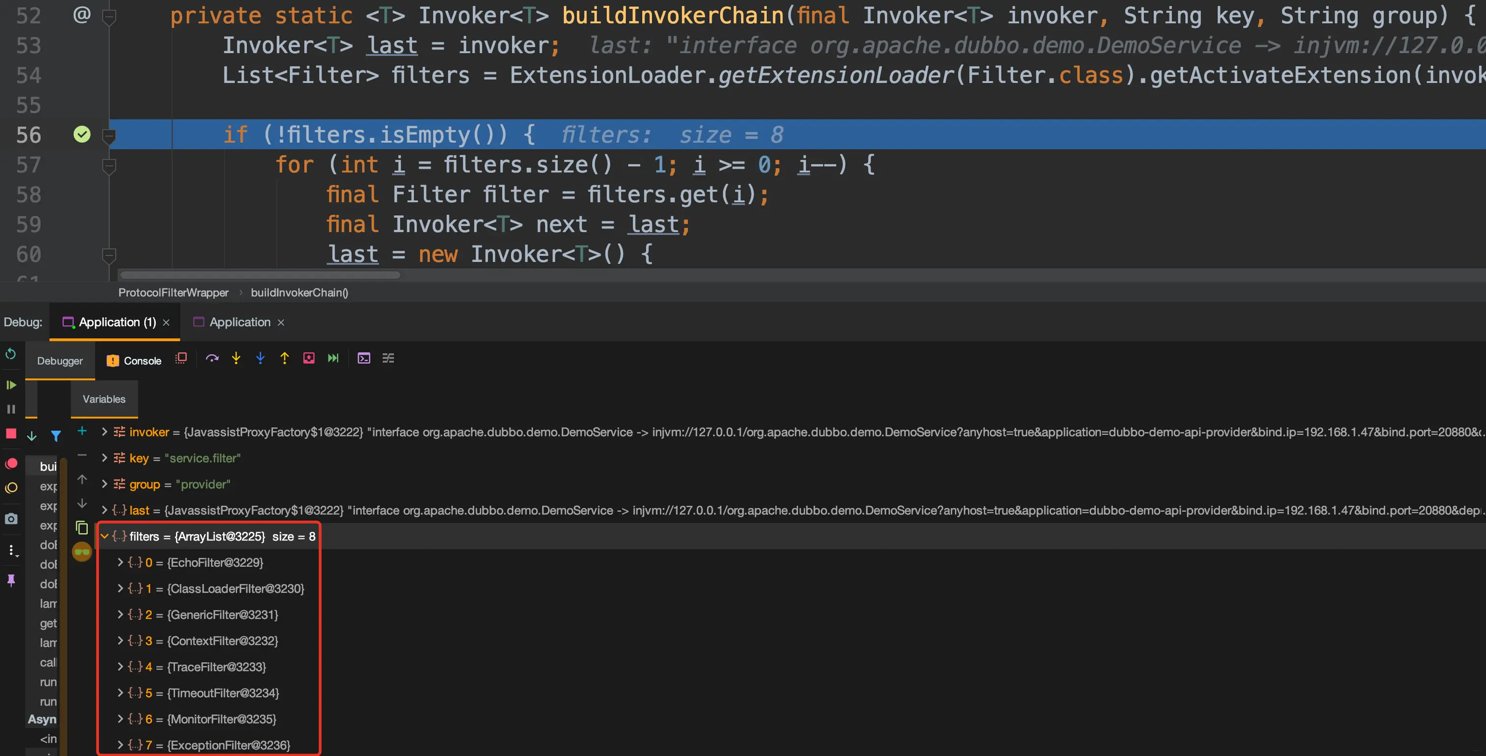 - 在7中,做的是过滤器操作, dubbo默认的过滤器是8个