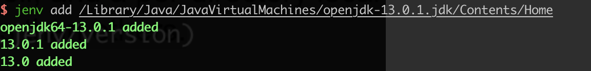 运行 jenv add jdk_path,将 JDK 交给 jenv 管理。