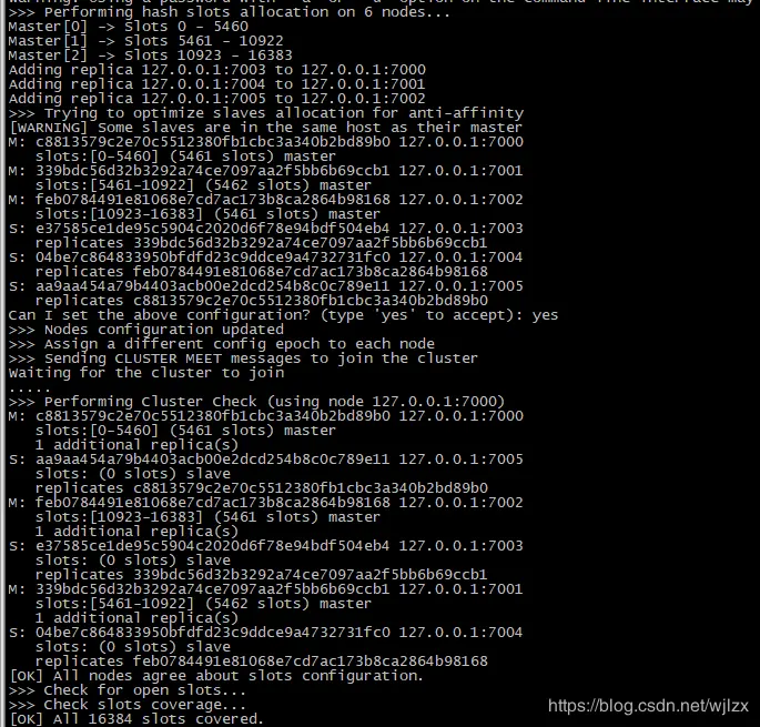 ./src/redis-cli --cluster create 127.0.0.1:7000 127.0.0.1:7001 127.0.0.1:7002 127.0.0.1:7003 127.0.0.1:7004 127.0.0.1:7005 --cluster-replicas 1 -a XXX-replicas 1 //每个主节点拥有1个从节点