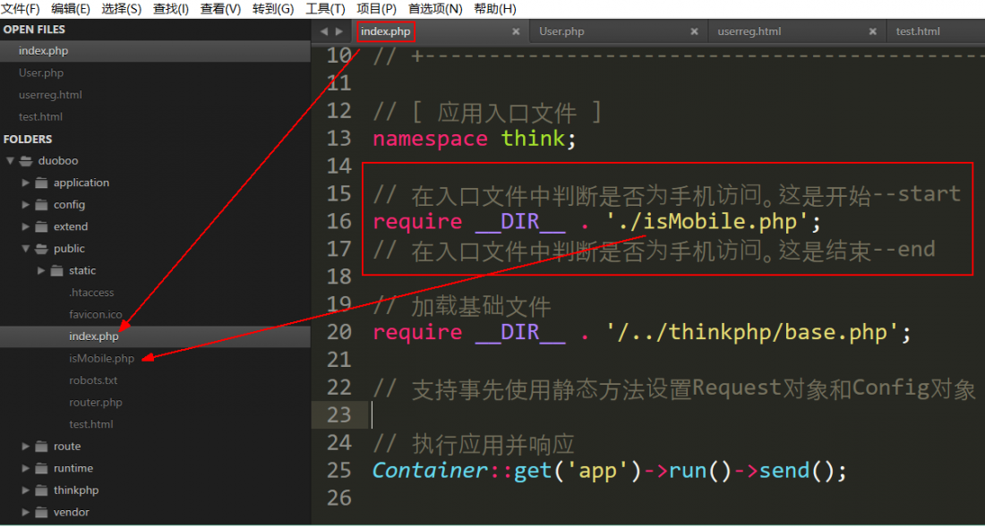 isMobile.php,他与入口文件在相同的文件夹下,其代码如下: