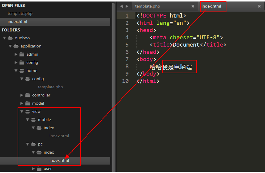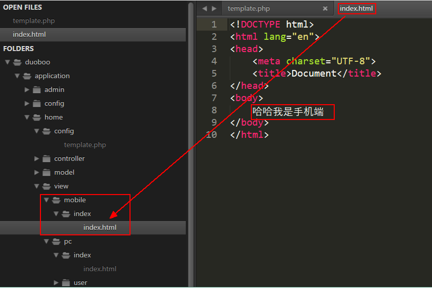 如果是手机,则定义手机访问的模板路径,如果是电脑,则定义电脑端的模板文件路径。