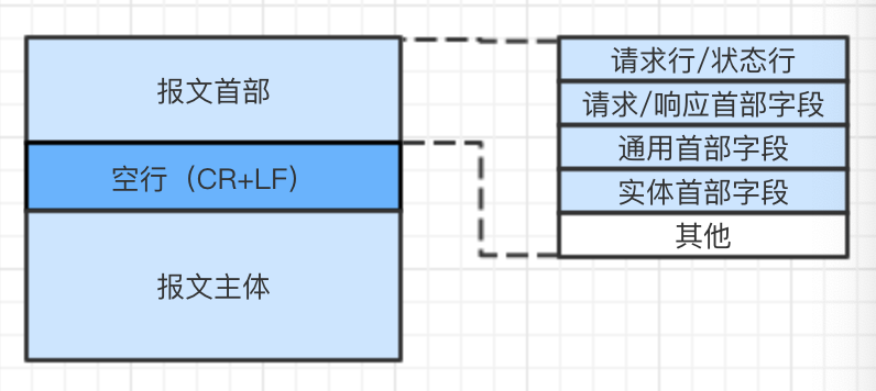 HTTP报文分为请求报文和响应报文,报文由多行数据构成的字符串文本(用CR+LF来划分)