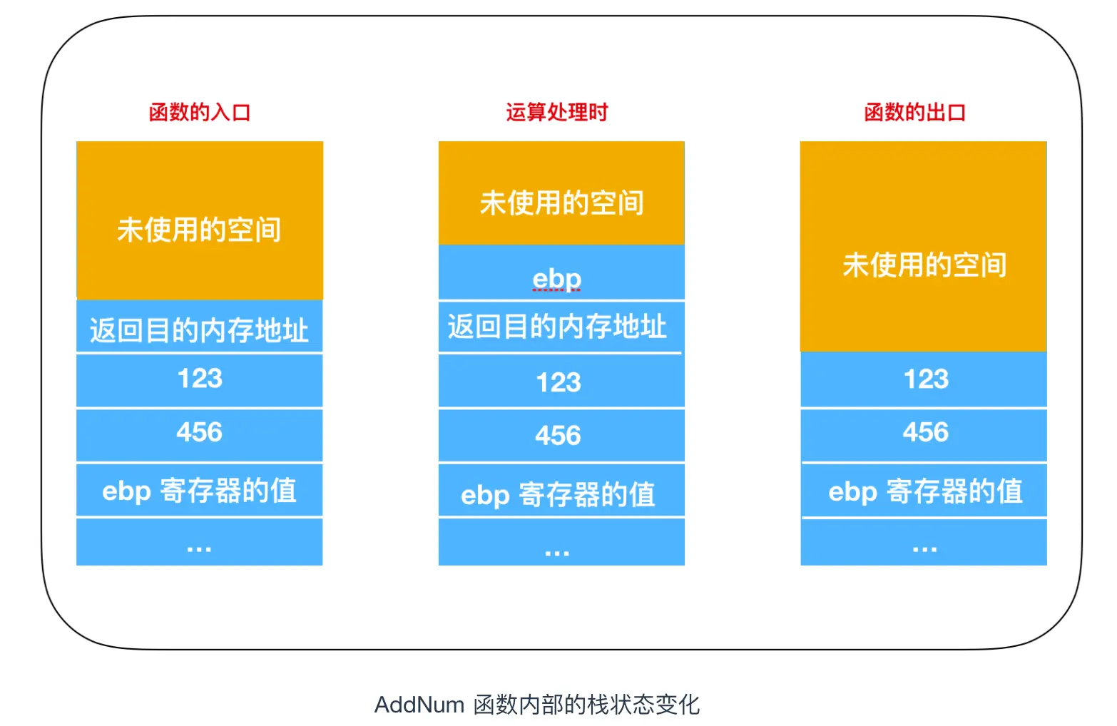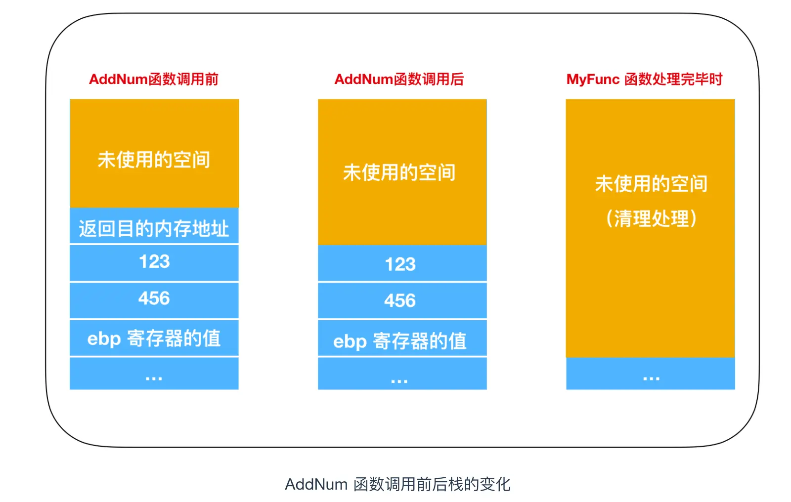 下图是调用 AddNum 这一函数前后栈内存的变化