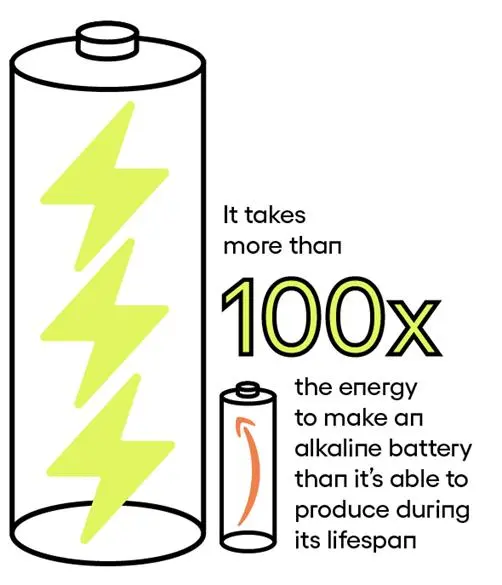 根据麻省理工学院的研究数据,特纳在2015年与人合著了一篇发表在《工业生态学杂志》上的论文,其中预估了“制造一个碱性电池所需的能量是使用电池所需能量的100倍以上”。把包括采购、生产和运输在内的电池的全部排放物加起来,其温室气体每瓦时排放量是平均燃煤电厂的30倍。