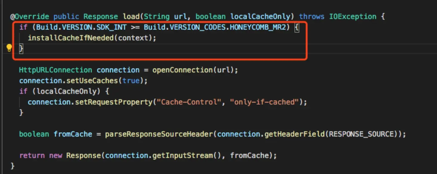 这段代码位于 Picasso 1.0.0 的 UrlConnectionLoader。Picasso 是 android 的一个图片加载框架。