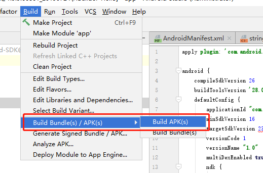 点击build中的打包apk