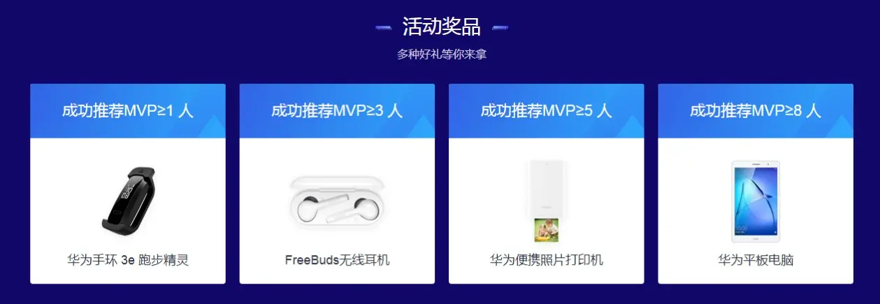 推荐他人成为MVP的活动活动奖品分别为: