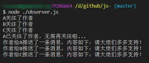 console.log(`${observer.name}已关注了作者,无需再关注啦...`);