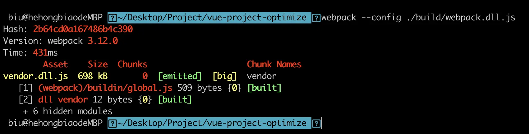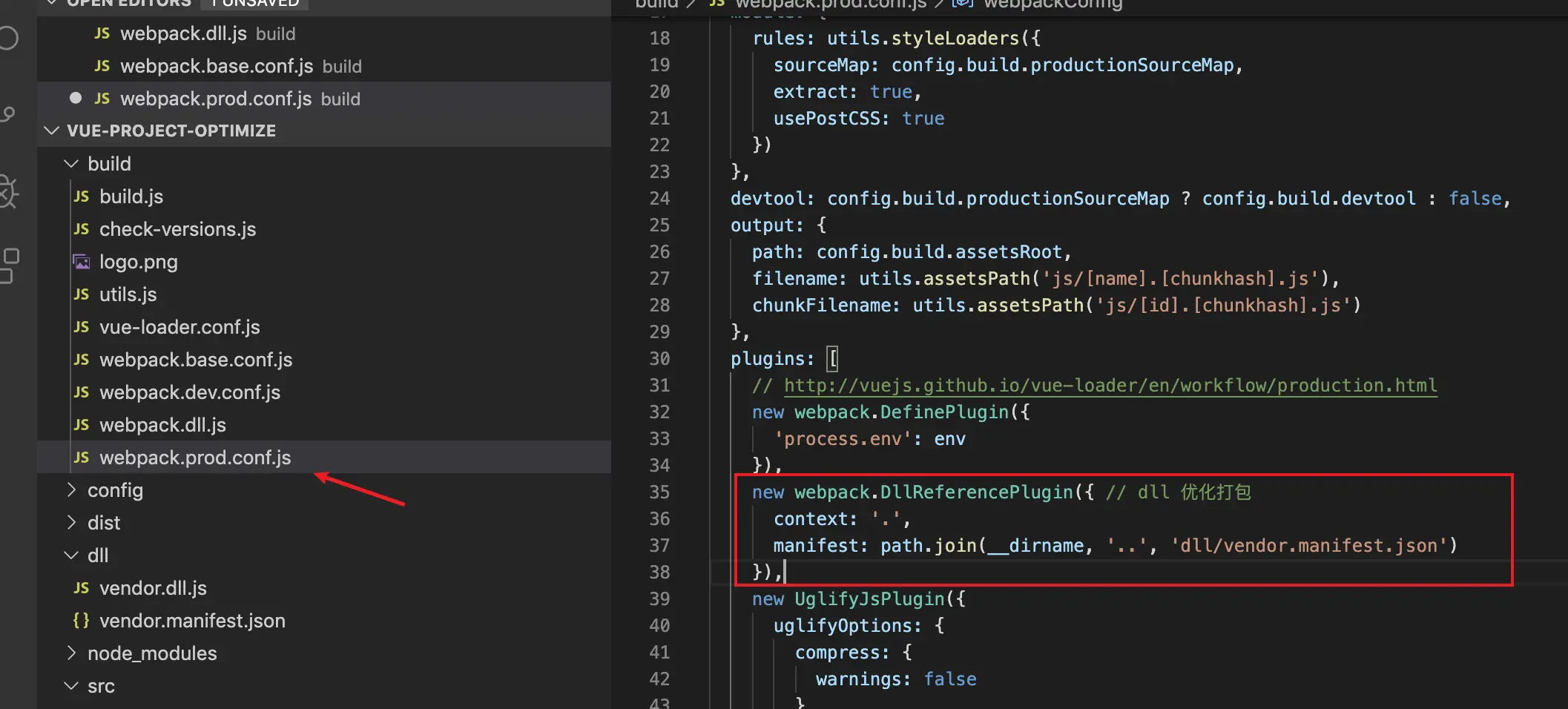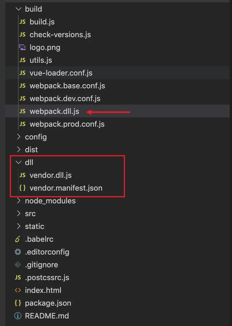 运行 webpack --config ./build/webpack.dll.js ,执行webpack的配置文件后得到dll后生成的文件