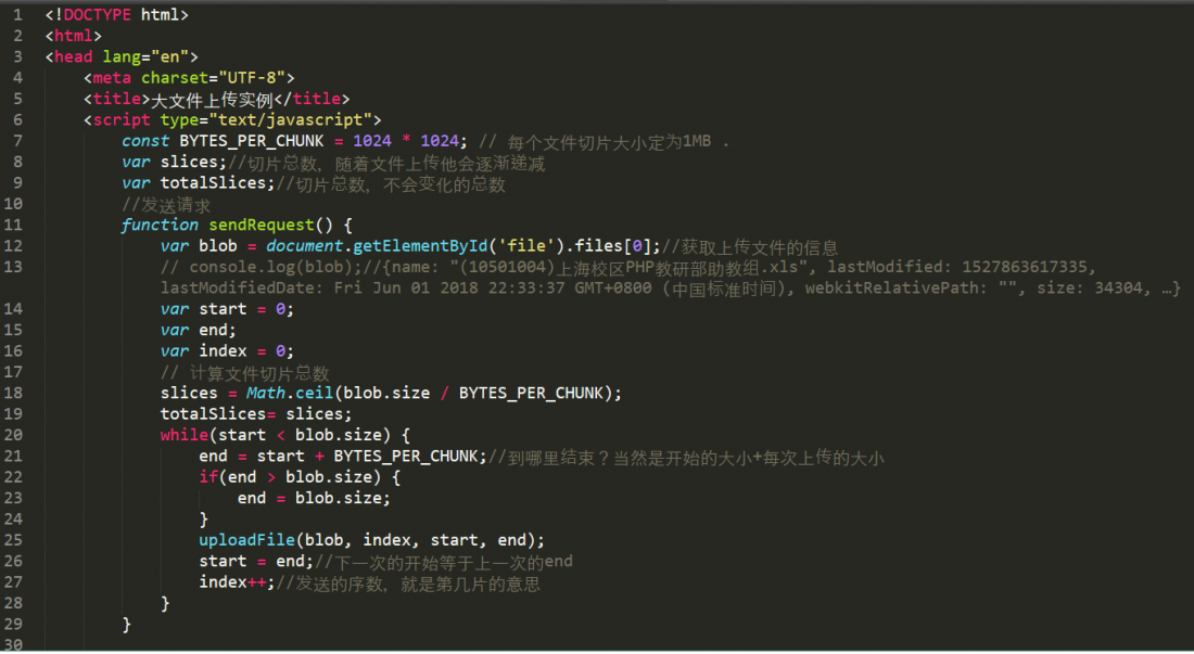 一般服务器单个文件上传限制基本都在几MB,但工作中经常也会遇到超大文件的上传,如何有效突破限制,上传大文件技术值得深入探讨。本文提供的大文件切片上传技术方案是研究了网路上出现的各种技术之后选定的方案,他简单可靠,很容易实现。 HTML5大文件切片上传涉及到三个文件,分别是用于发送切片文件的前端页面upload.html、用于接收切片文件的upload.php、接收完成以后用于合并切片的merge.php。废话少说,上菜! upload.html: