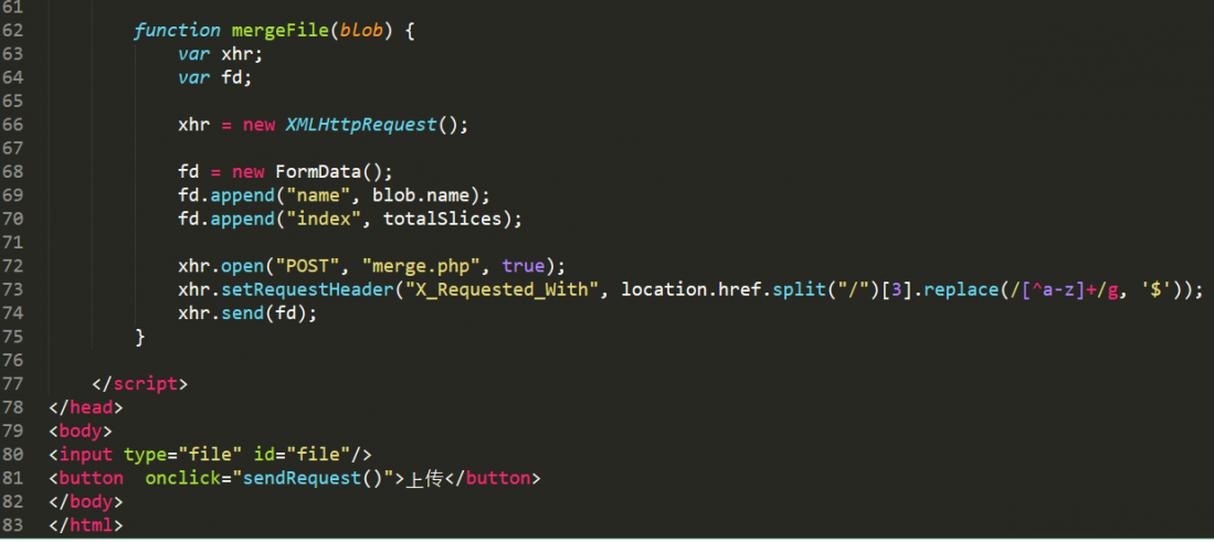 大文件切片上传涉及到三个文件,分别是用于发送切片文件的前端页面