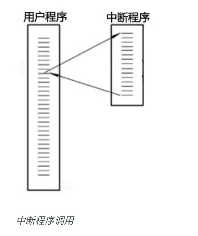 一般而言,由硬件产生的信号需要 CPU 立马做出回应,不然数据可能就丢失了,所以它的优先级很高。CPU 理应中断掉正在执行的程序,去做出响应;当 CPU 完成对硬件的响应后,再重新执行用户程序。中断的过程如下图,它和函数调用差不多,只不过函数调用是事先定好位置,而中断的位置由“信号”决定。