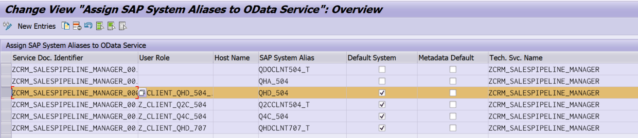 如果不知道怎样配置新建的这条记录,可以参考系统里已有的配置,例如下面SALES_PIPELINE这个OData服务的配置: