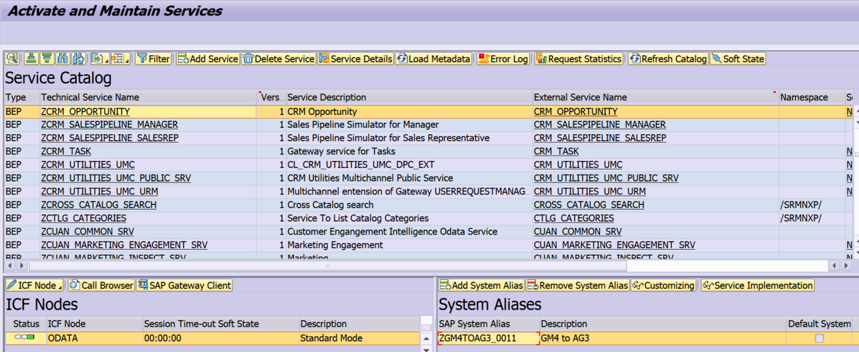 以SAP CRM Fiori应用My Opportunity为例,使用事务码/IWFND/MAINT_SERVICE, 根据关键字CRM_OPPORTUNITY查找,在搜索结果里点击Add System Alias: