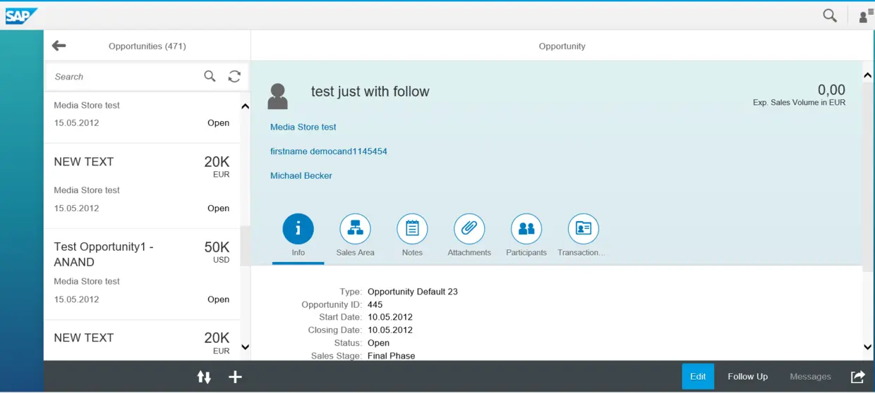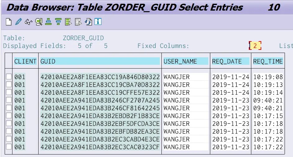 至此万事俱备了。回到Fiori 应用界面,随便点击几个Opportunity,触发读请求,回到自定义的数据库表,发现已经有一些日志记录在内了。