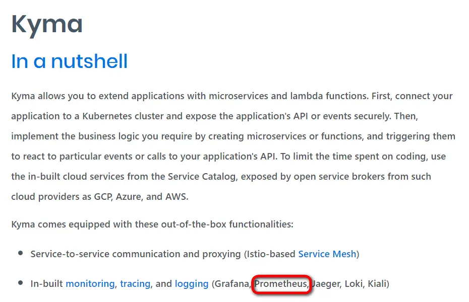 2016年,由Google发起的Linux基金会(Cloud Native Computing Foundation,CNCF)将Prometheus纳入其第二大开源项目,在开源社区十分活跃,SAP Kyma也使用了Prometheus作为其监控组件。