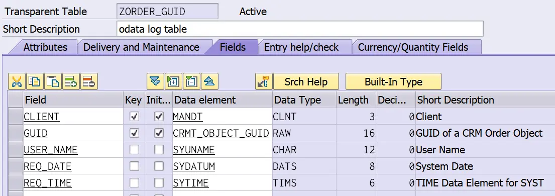 BAdI实现的逻辑很简单,依次把字段记录下来,插入数据库表: