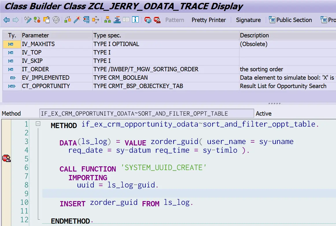 我们在Opportunity OData服务的实现里找到了一个BAdI增强,CRM_OPPORTUNITY_ODATA_BD: