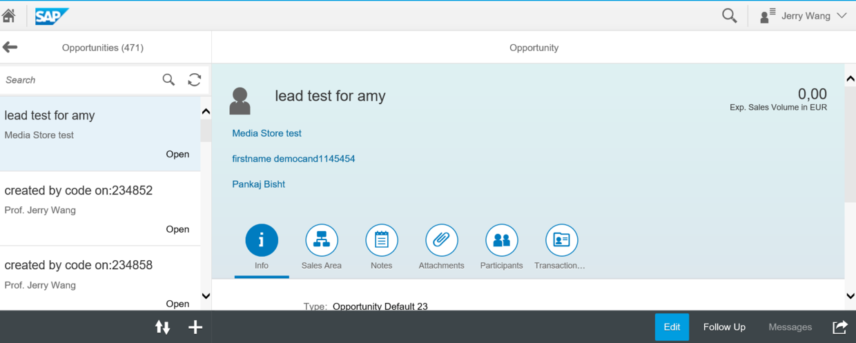 到Fiori UI上使用My Opportunity应用,触发读请求: