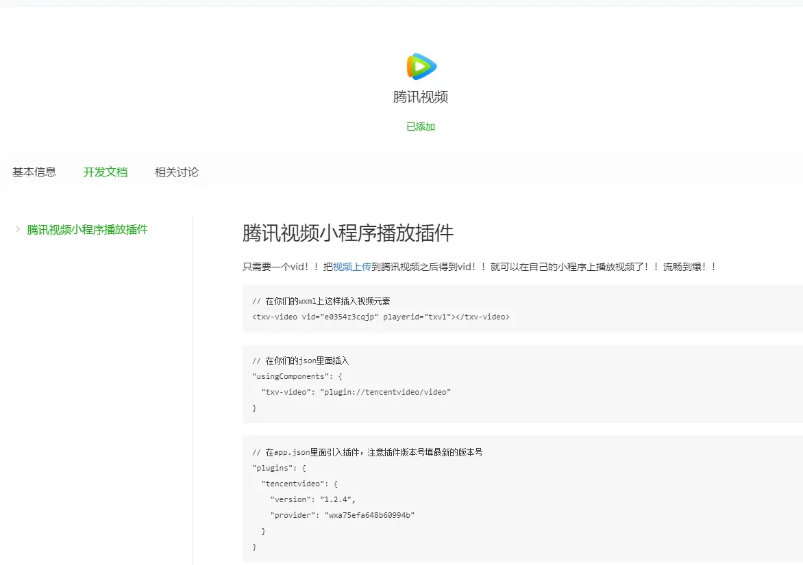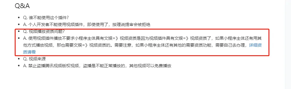 但是“文娱-视频”资质所需要的四选一证书都是很难申请的,所以在各种查资料之后发现可以使用腾讯视频插件代替video组件