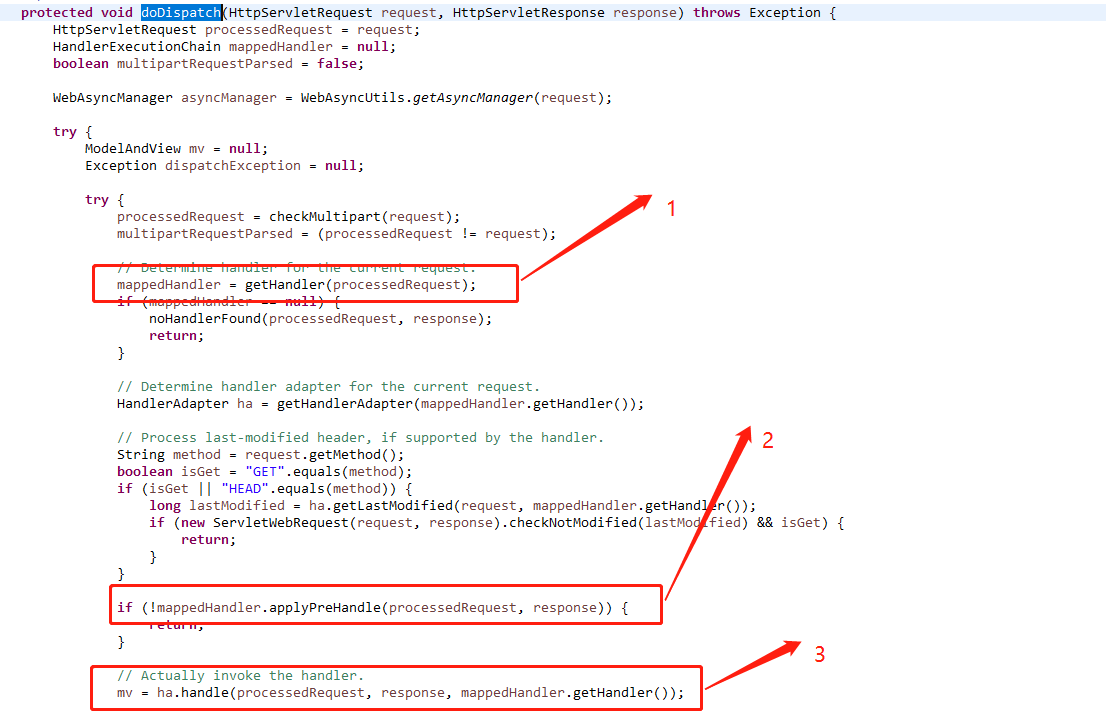 执行代码如下: org.springframework.web.servlet.DispatcherServlet.doDispatch(HttpServletRequest, HttpServletResponse)
