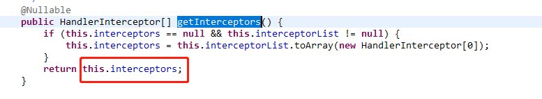 - 获取所有的拦截器,发现拦截器是存放在 HandlerExecutionChain.interceptors中.