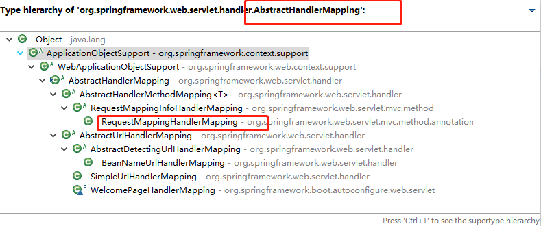 先看下AbstractHandlerMapping的结构,发现我们上面说到的requestMappinghandlerMapping是它的子类,这个也就是我们要讲的重点(requestMappinghandlerMapping的实例化过程)