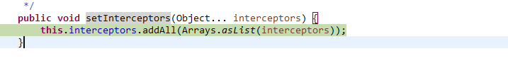 这个方法被我们重写了,就是在使用 拦截器 的两个步骤中的 第二步 ,我们把自己写的拦截器传了进去