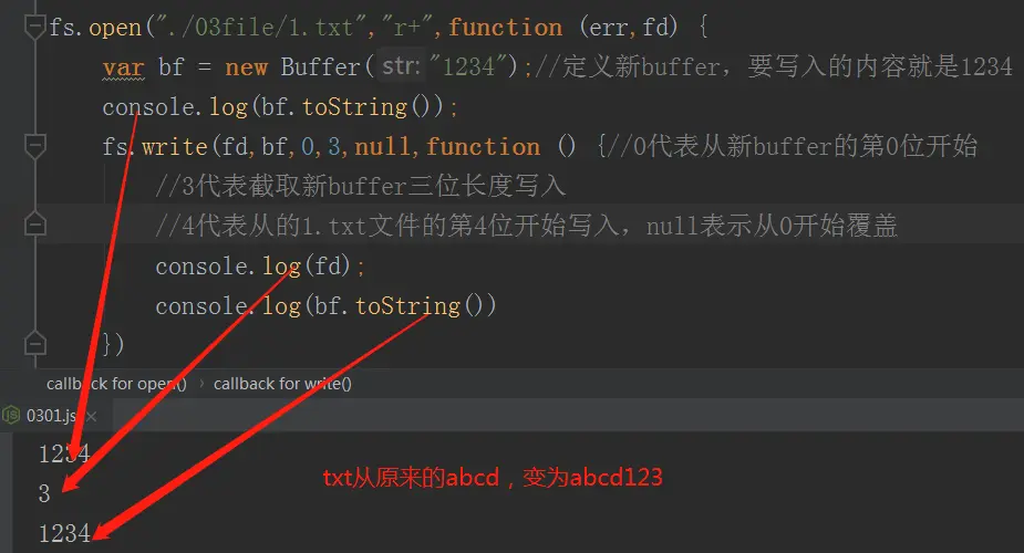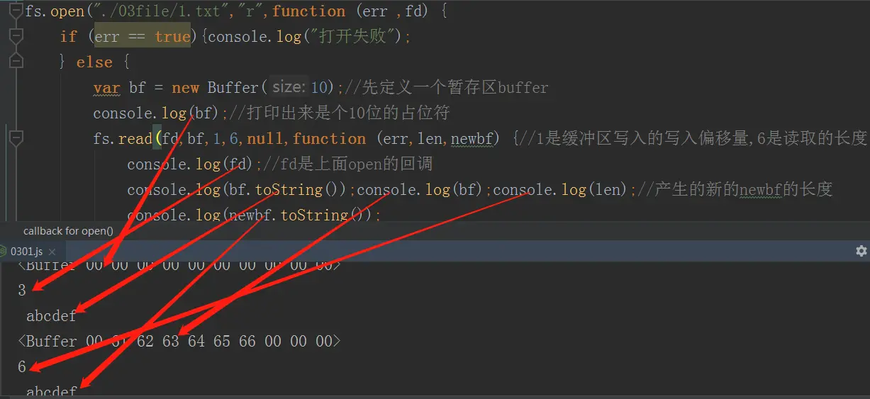 打开后读取文件内容用fs.read(fd, buffer, offset, length, position, callback)