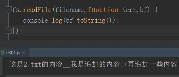 fs.appendFile(filename,"__我是追加的内容!",function () { });在原有文件的基础上追加内容。