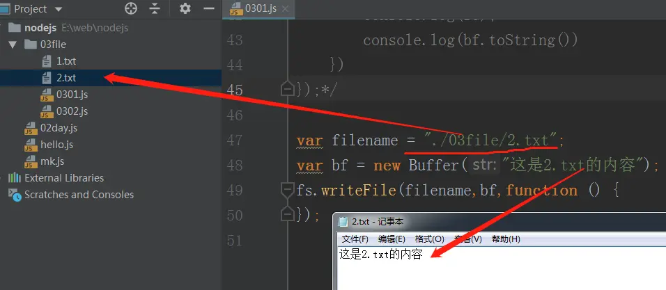 var filename ="./03file/1.txt";//先声明一个文件名及路径
