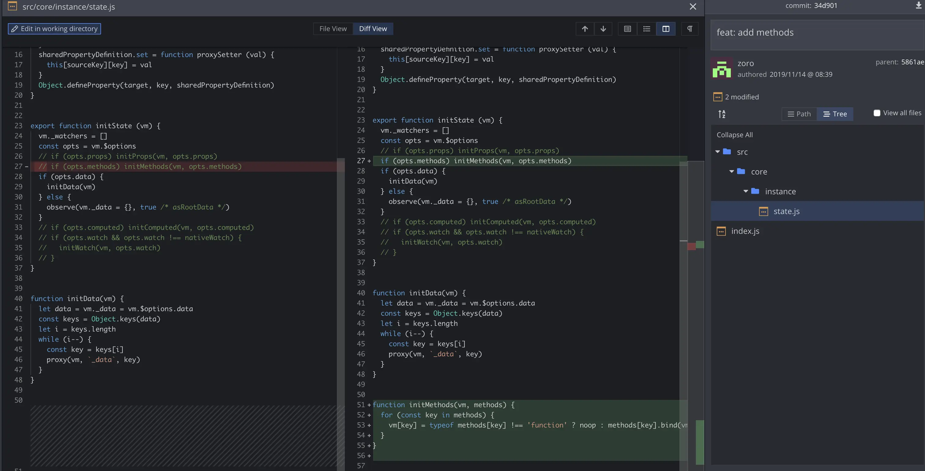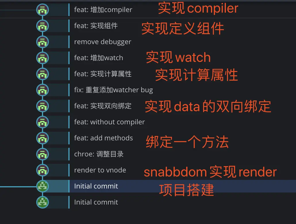 大家可以根据commit来看是如何一步一步实现vue2的(注意从下到上)