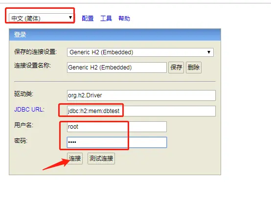 http://localhost:2088/h2,可以打开h2数据库管理器登录界面,能够进入如下页面说明H2集成成功!