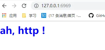 <!--输出结果--> server startd at http:// 127.0.0.1:6969 - 在浏览器输入规定的主机名以及端口即可访问我们编写的本地服务器