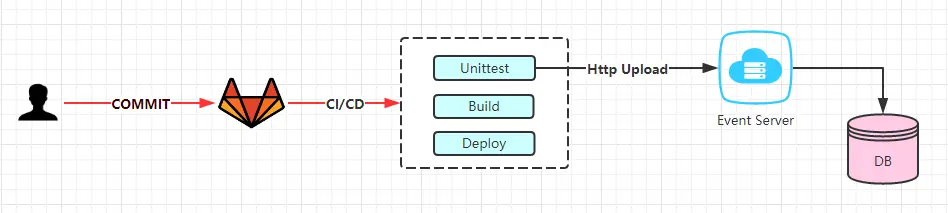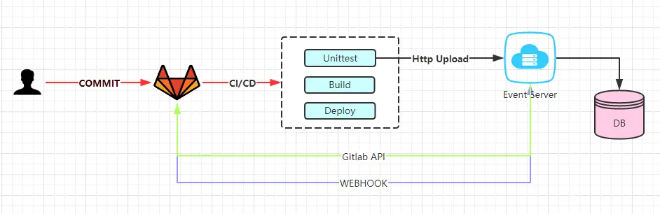 } 因为单元测试属于gitlab的pipeline事件,捕获Gitlab pipeline回调事件,即可提取类型为unittest的job数据,将pipelineid,jobid,name,coverage,commiter,commitevent等数据入库;但是这一步还拿不到详细的单元测试数据,比如测试用例数和成功失败用例数; 流程图示: