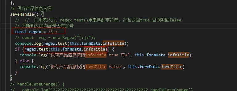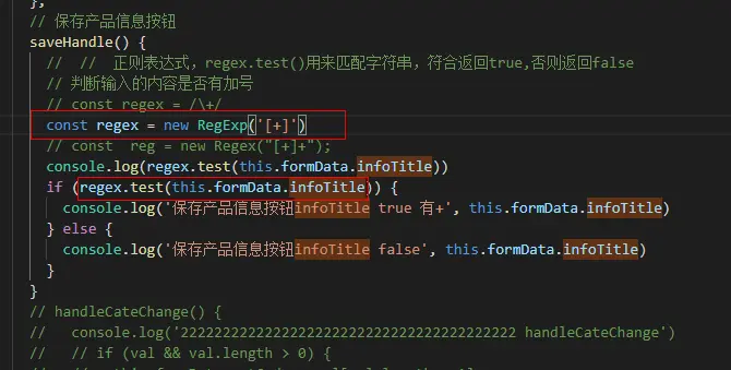 console.log(regex.test(this.formData.infoTitle))