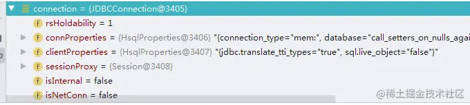调试过程中可以看到上述方法创建的是一个 JDBCConnection