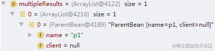 由于 multipleResults.size() 为1,获取首个元素并返回。