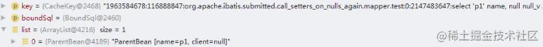 至此,mybatis 查询的源码执行流程就走完了,parentBean.getName() 得到的值为 p1,测试通过。