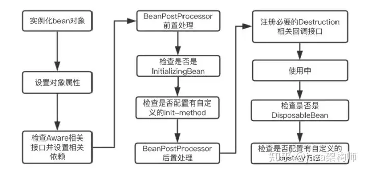 为了理解这两个方法执行的时机,简单的了解下bean的整个生命周期: