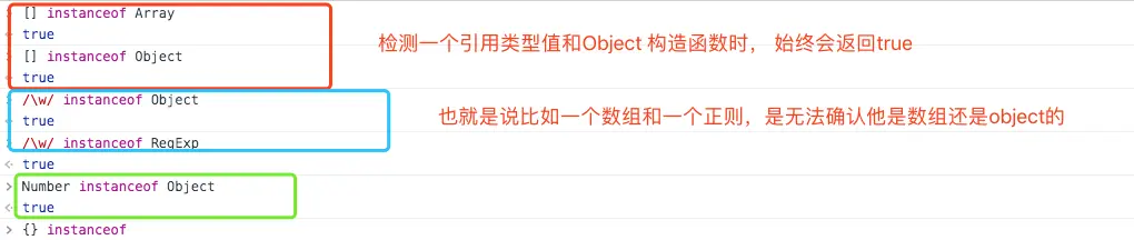 - instanceof检测和object关系时,始终都返回true