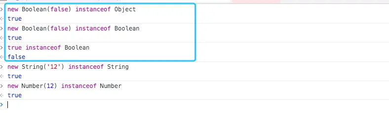 - instanceof检测基本数据类型,始终返回false