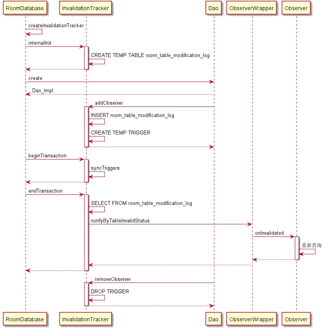 图中有一些不合适的地方,removeObserver并不是有Dao调用的,而是查询返回的RxJava Observable或者LiveData“不再用”了的时候被各自调用的。