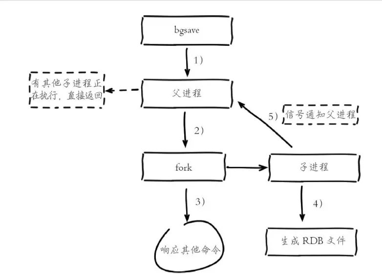 ①redis执行bgsave命令后,父进程会判断当前是否有子进程正在执行,如果有,直接返回。
