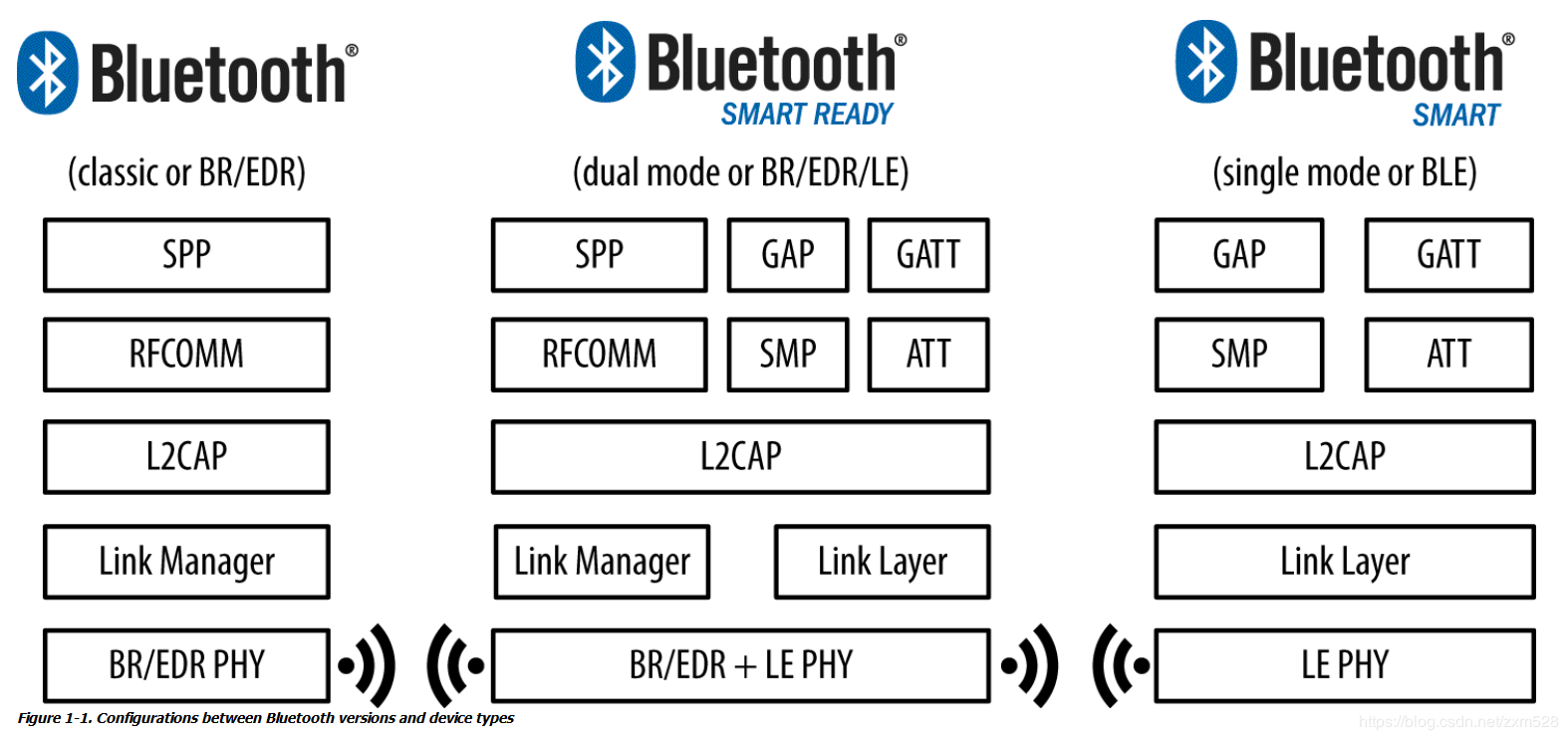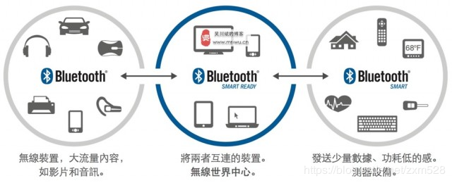 蓝牙一共分为三种类型:Bluetooth,Bluetooth Smart Ready, Bluetooth Smart.
