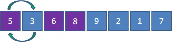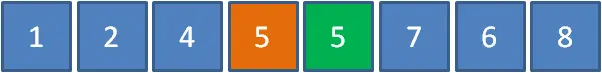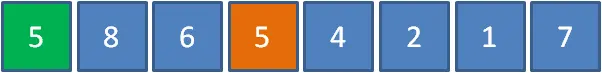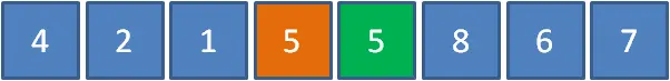 上面数组当中,有两个元素5,绿色的5在前,橙色的5在后。