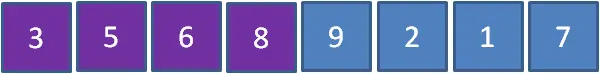 比如下面数组中的元素3,按照大小关系,需要插入到前面有序区三个元素之前,而前面三个元素则相应向后挪动: