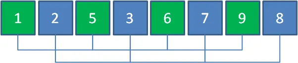 如图所示,元素5,1,9,6一组,元素2,3,8,7一组,一共两组。