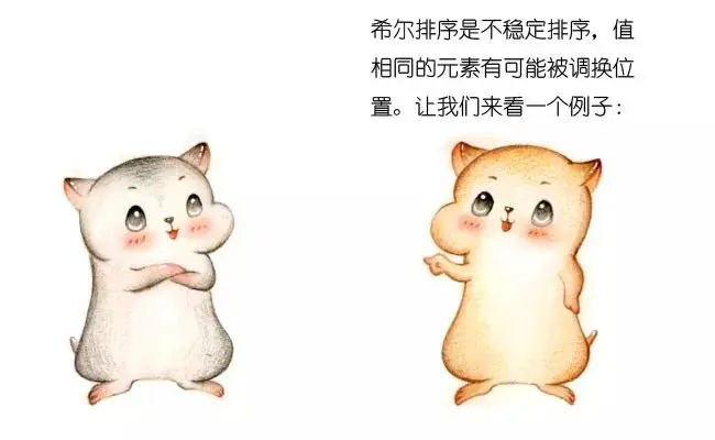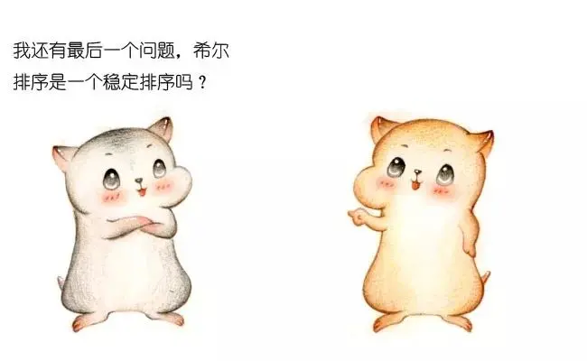 相同的元素5,在排序之后改变了次序,由此可见希尔排序是一个不稳定排序。